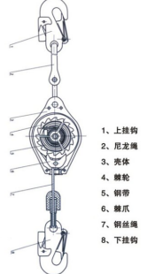 1、上掛鉤:上掛鉤掛在工作點上方的結(jié)構(gòu)架上;