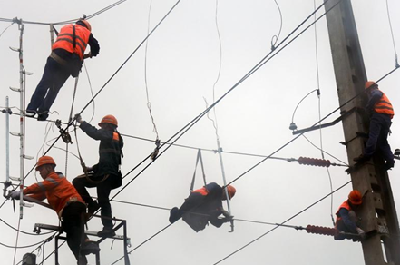 無論是高溫天,還是下雨天,鐵路工人在高空安全帶的保護下,都能心無旁騖、安全高效的完成電網(wǎng)維修工作。